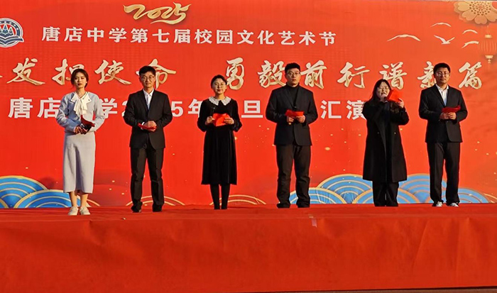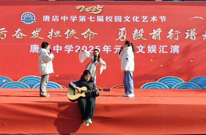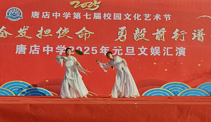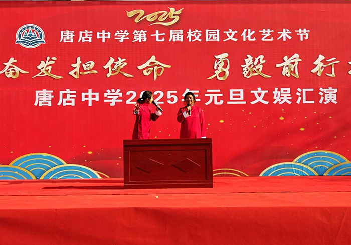 金龙腾飞辞旧岁,银蛇曼舞迎新春。12月31日下午,唐店中学2025年元旦文娱汇演在运动场隆重举行。数千名师生欢聚一堂,以文艺为名,共襄盛举;绽文艺之花,喜迎元旦。本次元旦文娱汇演以“踔厉奋发新征程,勇毅前行谱新篇”为主题,节目形式丰富多彩,既有精彩的舞蹈、歌唱、朗诵,又有创意十足的小品、相声等表演,充分展现了唐中学子的多才多艺和积极向上的精神风貌。