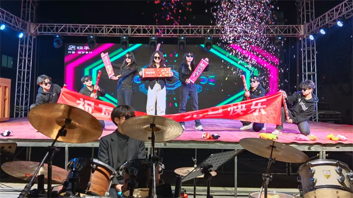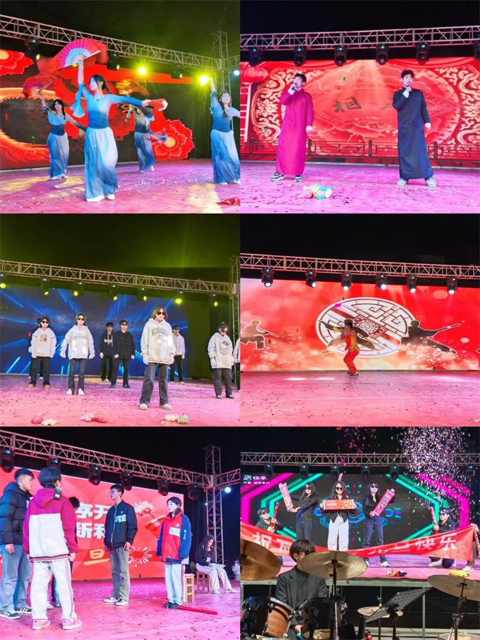 语言类节目也毫不逊色。小品《白雪公主和七个葫芦娃》和《反校园霸凌》,幽默风趣的对白和夸张的表演引得观众捧腹大笑;李俊也、张艺扬的相声《抬杠》,凭借巧妙的包袱设计和默契的配合,让现场笑声不断。此外,刘帅、何逸旋、房向奔带来的《武术串烧》,一招一式刚劲有力,充分展示了中华武术的魅力;高一4班舞台剧《达拉崩吧》,利用多彩的服饰以及生动的表演呈现出充满奇幻色彩和深刻主题,充满力量与激情;晚会中场送吉祥物环节更是将现场气氛推向高潮,师生们积极参与,欢笑声此起彼伏,增进了彼此之间的情谊。
