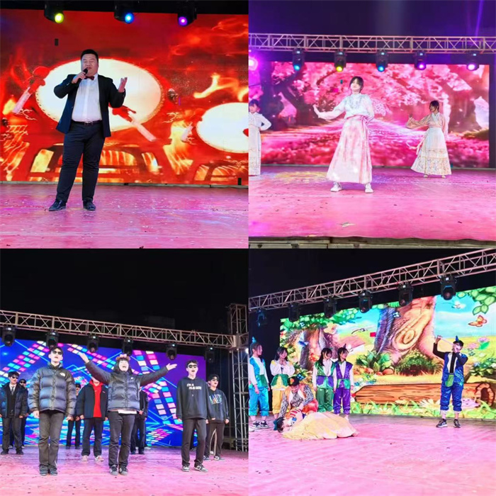 随后,各类节目轮番登场,为观众们带来了一场视听盛宴。舞蹈节目风格多样,《奶龙》舞步轻快,洋溢着新年的喜悦;《洛春赋》用婀娜的舞姿诠释了浪漫的情感;《APT》将青春活力与动感节拍完美融合;《抬龙王》则以细腻的舞蹈语言传递出深刻的情感内涵,赢得现场阵阵喝彩;《相亲相爱》则成为了整场晚会的一大亮点,当那熟悉且极具感染力的音乐响起,全场观众的目光瞬间被舞台上的表演者吸引过去。
