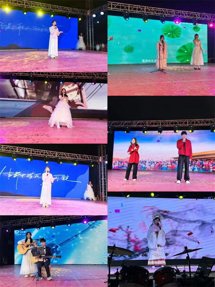 歌曲演唱同样精彩非凡。《我和2035有个约》《天下》《歌曲串烧》《我的歌声里》用富有感染力的嗓音唱出了歌曲中的深情;《昨夜微雨问海棠》纯净的歌声带领大家一起探寻那抹海棠的韵味;《牵丝戏》以独特的声线展现出了强大的舞台掌控力;《岁月神偷》则以动人的演唱,勾起了观众们对过往情感的回忆。教师们的《不要慌太阳下山有月光》以其温暖励志的歌词和动人的旋律告诉我们,在人生的旅途中,无论遇到多少困难和挑战,都不要迷茫、不要慌张;马睿老师的《龙的传人》,唱出了作为华夏儿女,炎黄子孙的骄傲和自豪。
