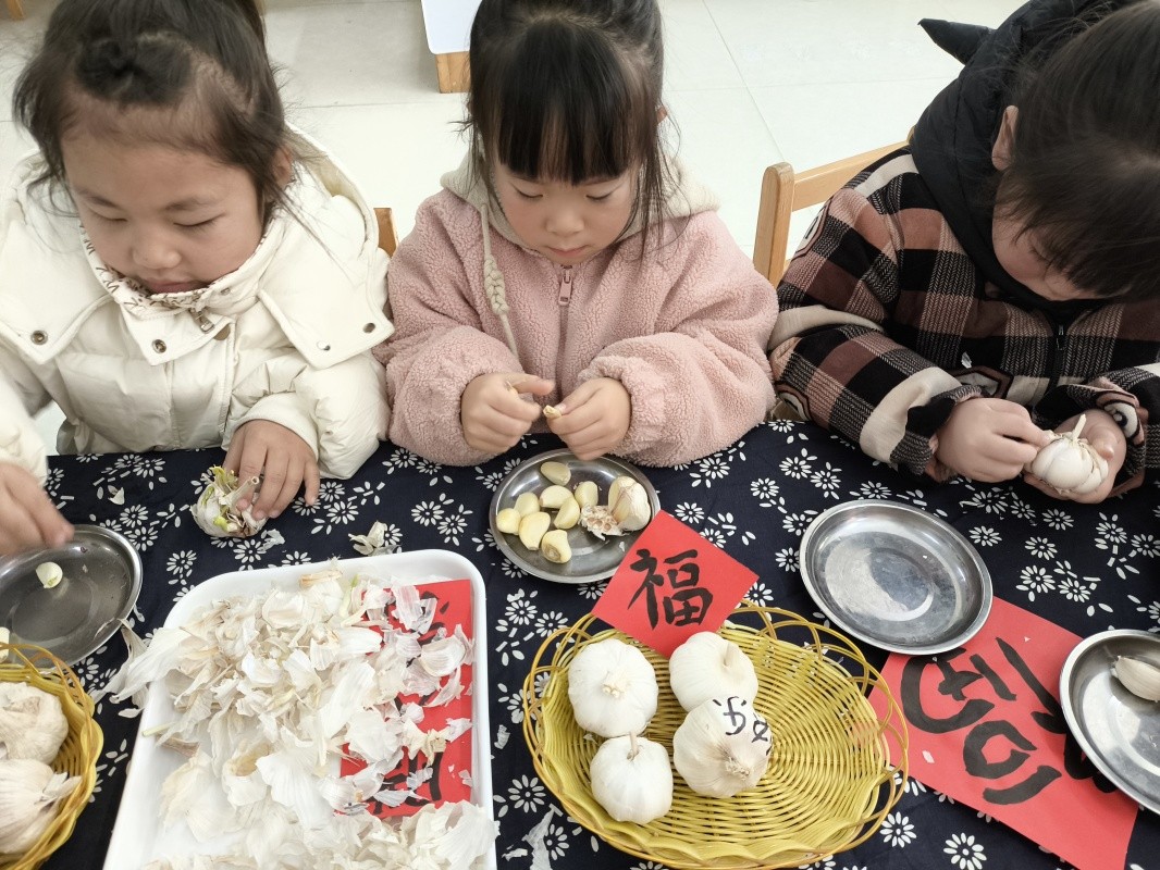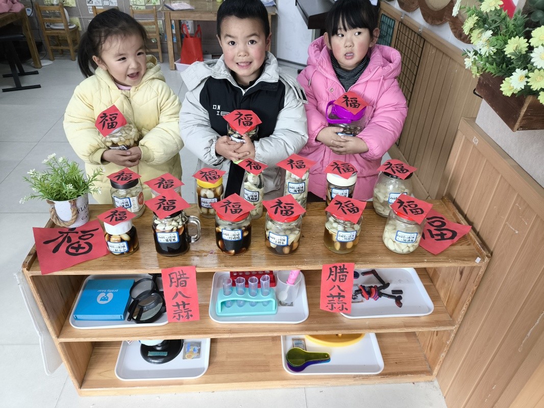 “生活即教育”,孩子们在制作腊八蒜的过程中,不仅锻炼了动手能力,而且让孩子们感受了传统美食和人们的智慧,增强了对传统节日的认知,体会传统节日带来的乐趣。在时间的作用下,它们会发生什么变化呢?让我们一起静静等待......