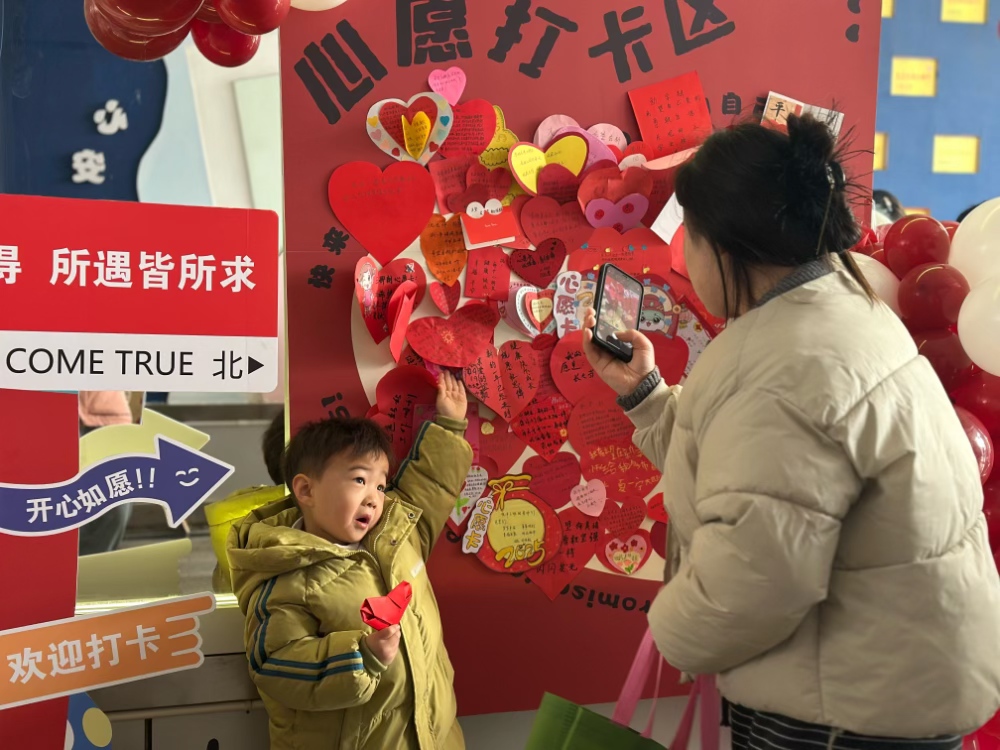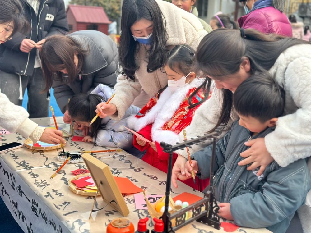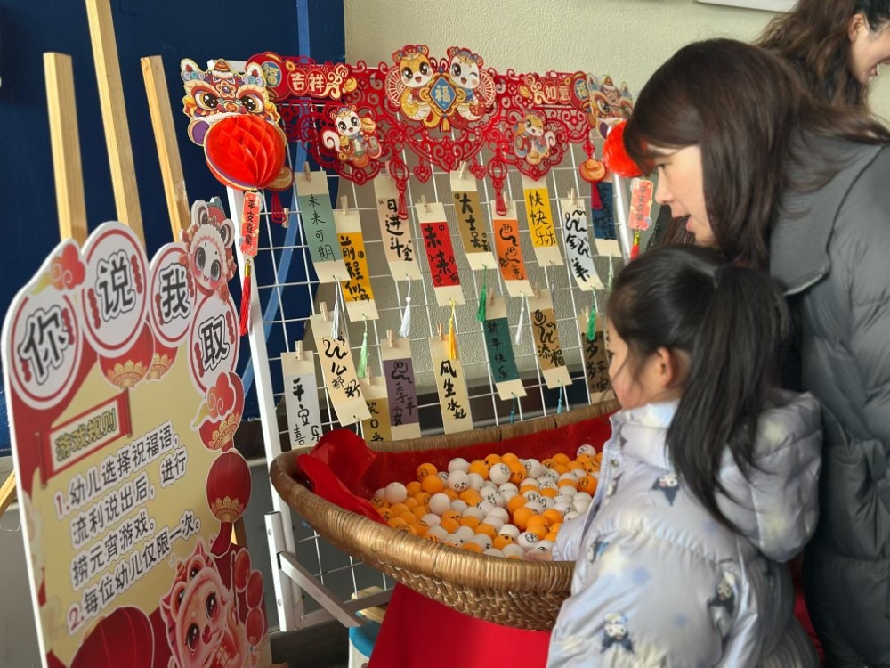 “福运第一站:心语新愿墙”穿上新年传统服饰,带上装满期待的红色心愿卡,和孩子一起写下新春祝福。当稚嫩的小手与温暖的大手共同将心愿卡贴在许愿墙上,爱的种子正在悄然发芽。“击鼓鸣志 壮志萌心”“咚咚咚……"希望每个孩子都能化身小勇士,用鼓槌敲响成长最强音。三声鼓响寓意:一击知礼明德,二击勤学善思,三击健康常乐,让传统文化浸润童年。“元宵喜乐会 巧手捞福圆”在布满吉祥话锦囊的汤圆池里,孩子们需大声说出“甜甜蜜蜜”“茁壮成长”等祝福语,才能用漏勺捞出象征团圆的彩色汤圆,收获新年第一份甜蜜挑战证书。“亲子翰墨 福字承心意”笔墨纸砚已备齐。家长握着孩子的手书写创意福字:画只小兔变成“福兔临门”,添朵祥云化作“福运绵长”,完成的作品将登上“福气”墙进行展示。“智慧灯笼阵·趣味猜灯谜”元宵灯谜挂满一片,里面藏着会跳舞的谜语精灵,等孩子们用聪明的小脑瓜来捕捉。