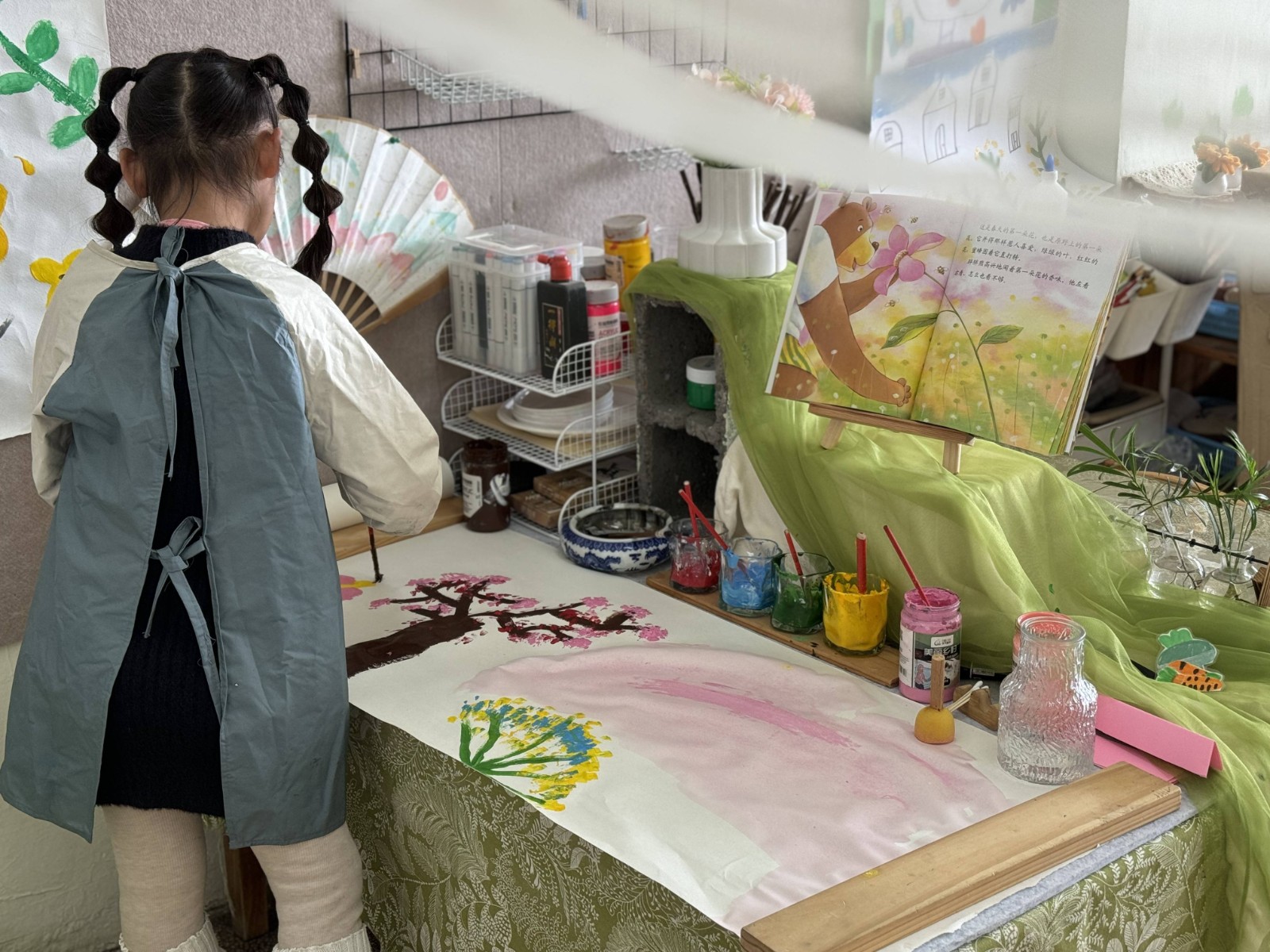 “小雨跑到我的鞋子里,我的脚冷冷的”“踩一踩草地,咔嚓咔嚓是春天在唱歌”……“儿童是用身体丈量世界的。”该园教师将课堂搬到雷声滚过的草地,让孩子们在真实的自然情境中感知惊蛰“万物生发”的奥秘。孩子们用艺术创作描绘心中的春天,他们用线条、色彩和语言,将眼中的惊蛰定格成充满诗意的画卷。园所还特别策划“春天里的一场雪”主题讨论,引导孩子们在矛盾中思辨,通过观察、实验和讨论,理解自然现象的多元意义,培养辩证思维。