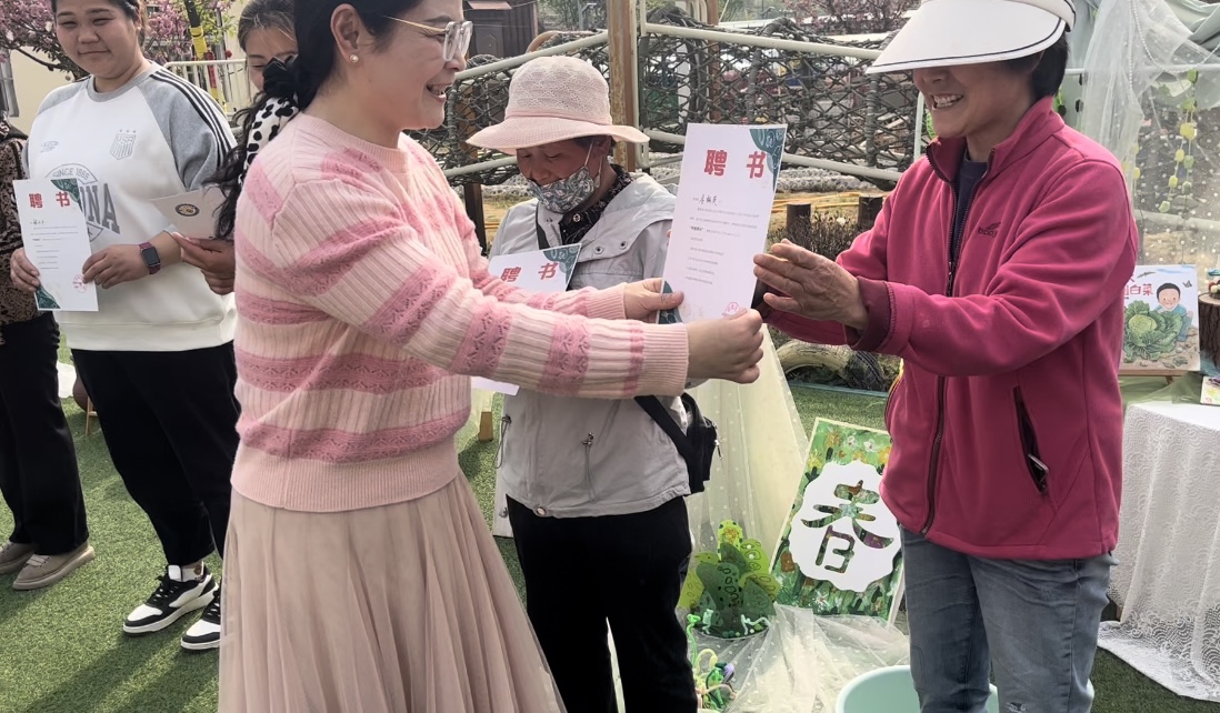 活动伊始,城北幼儿园陆晶晶主任热情致辞,阐述春耕活动对幼儿成长的重要意义。接着,幼儿园为有丰富种植经验的家长颁发 “种植顾问” 聘书,为种植实践提供专业保障。孩子们响亮喊出 “小小园丁本领大,浇水松土护绿芽!” 的宣言,满是对生命成长的期待。