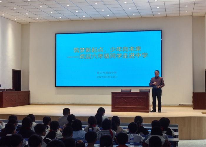 4月23日下午,新沂市城岗中学以“筑梦新起点 少年向未来”为主题,开展棋盘镇城岗小学六年级学生游校活动。城岗小学六年级二百多名师生在该校司增勇校长的带领下,深度体验初中校园生活,感受城岗中学校园文化的魅力。