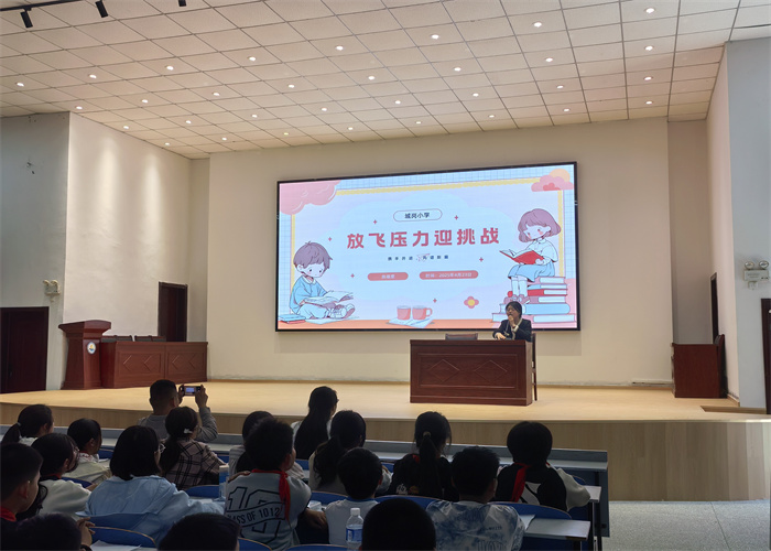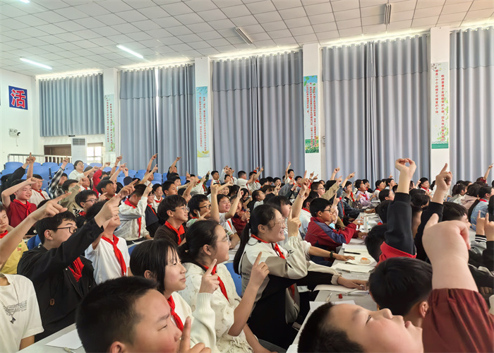 随后,参与活动的城岗小学全体师生齐聚学校报告厅,城岗中学党支部副书记王权威致欢迎词。他详细阐释了学校的“博(搏、玻)文化”内涵,并介绍了学校近些年来取得的教学成绩。王权威副书记表示,城岗中学始终致力于打造农村教育窗口学校,期待未来与同学们共同成长。