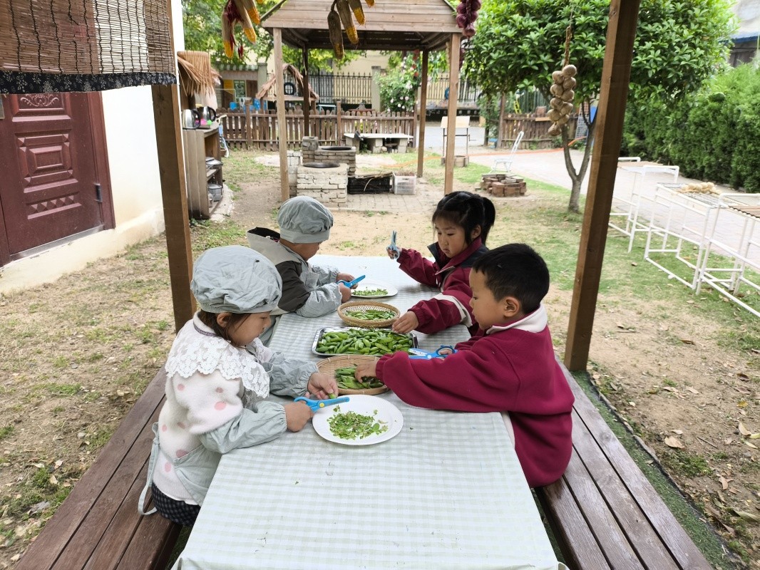 了解了豌豆的相关知识后,邵店镇中心幼儿园的教师带着孩子们开始采摘豌豆。采摘结束后,师幼们带着自己的劳动成果,来到了“农家小院”,开始美食制作。清洗、修剪、起火烧水、放入豌豆、加入食盐,一系列流程行云流水,孩子们真切感受到劳动带来的甜蜜与价值,以及从田间到餐桌的奇妙过程。
