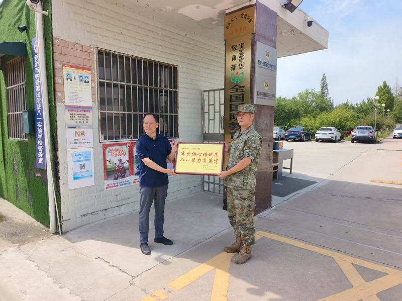 9月10日,中国人民解放军 73071 部队领导一行四人前往市八一实验学校开展走访慰问活动,向学校广大教师致以节日的诚挚祝福,并赠送纪念牌匾“军民协心培桃李,八一聚力育英才”。