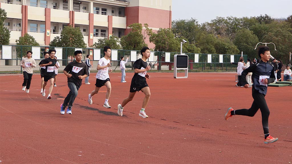 随着发令枪响,短跑、长跑、跳高、跳远、4×100米接力赛等项目紧张有序展开。裁判员们专注严谨,仔细检查器材、精准记录成绩,以公平公正守护赛事秩序;志愿者们穿梭于各个角落,递水、扶送运动员、维护场地卫生,忙碌的身影成为赛场最温暖的风景线;各班观赛区域布置得独具特色,色彩鲜艳的加油牌、整齐洪亮的呐喊声,展现出极强的集体凝聚力。
