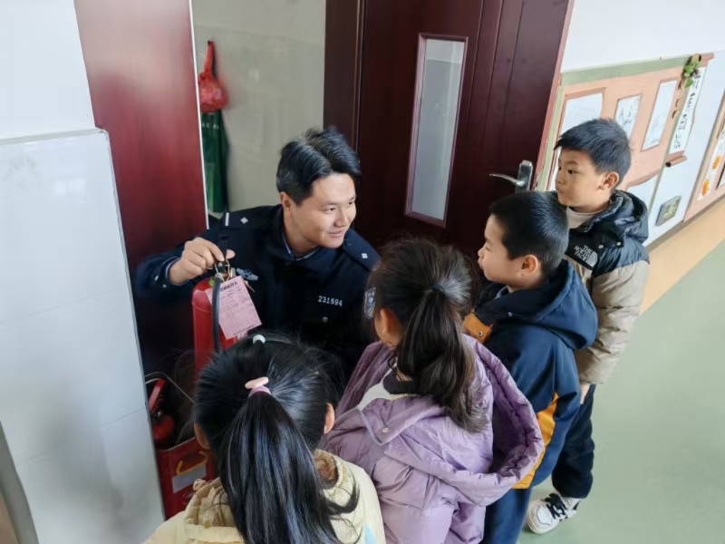 活动中,法制副校长用绘本故事、互动游戏,向孩子们讲解校园欺凌的危害,引导孩子们友好相处;从日常洗手、饮食卫生等细节入手,普及卫生安全知识。在消防器材讲解环节,栗荟仁警官现场演示灭火器的正确操作流程,让抽象的消防知识变得直观易懂。