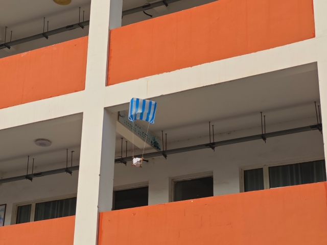 实验现场热闹非凡,每一组装置的坠落都牵动着全场目光。当降落伞载着鸡蛋缓缓飘落、三角支架落地轻微变形却护住鸡蛋完好、泡沫包裹的装置弹跳数下后毫发无损时,操场上传来阵阵喝彩;当个别小组因缓冲材料不足、结构设计疏漏导致鸡蛋碎裂时,孩子们也不气馁,围在一起复盘问题、交流改进思路。没有复杂的评比规则,只有真实的体验与真切的感悟;没有刻意的表演,只有孩子们发自内心的探索热情。