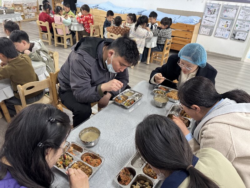 食堂负责人刘静主任通过PPT详细介绍3月份食堂收支情况、常态化食材验收机制、进货渠道与质检标准、食材成本占比及本学期教干、家长陪餐记录。家长现场抽样查阅收支明细表,园方逐一解答疑问。家委会围绕食材品质、储存等方面提出建议,围绕膳食营养、幼儿口味及面食种类建言献策。家委会成员参观食堂外部监控,清晰查看食堂全域及工作人员的全流程操作,直观监督膳食制作。家委会进入食堂,依次参观食材储存区、清洗加工区、烹饪区、备餐区消毒区,查看环境卫生、规范操作流程及食材分类存放情况。之后,家委会分批走进大三班、大四班陪餐,体验菜品温度、口感、分量及自主就餐。家长代表反馈,幼儿园饭菜营养均衡、盐味适中、荤素搭配科学、美味可口,十分符合幼儿口味与成长需求。陪餐结束后认真填写《食堂监督检查记录表》《陪餐记录表》《食谱征订表》。